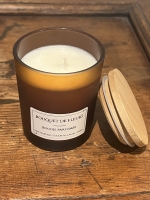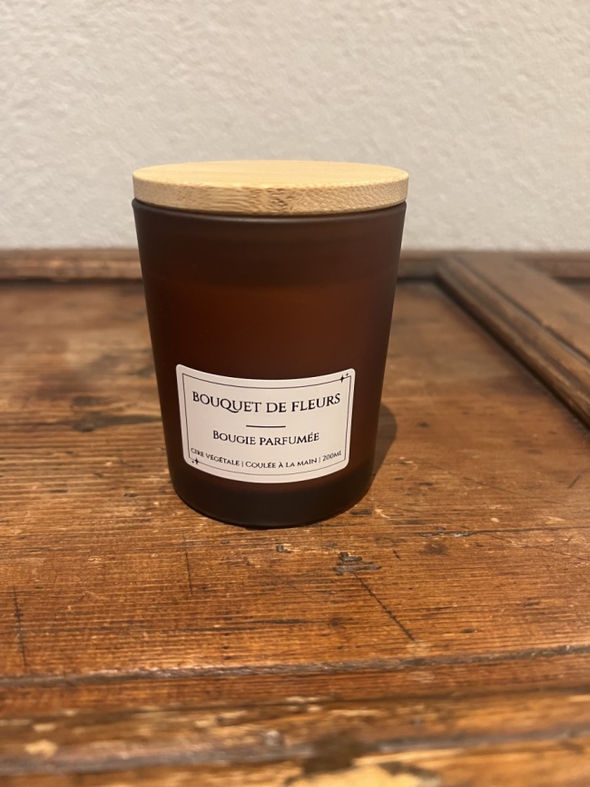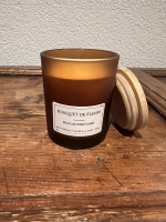 Bougie artisanale dans un pot en verre ambré avec couvercle en bois. 200ml