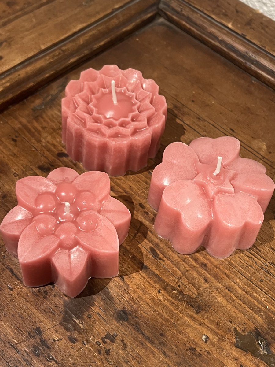 Bougies artisanales en diffèrentes formes de fleur à la cire paraffine/stéarine végétale fabriqué en Suisse